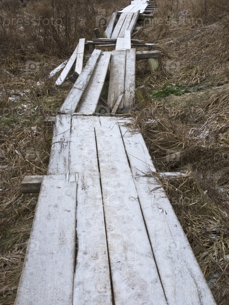Разрушенные деревянные мостки