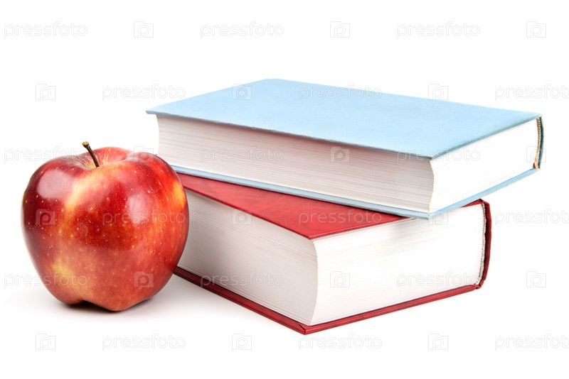 Книги и красное яблоко