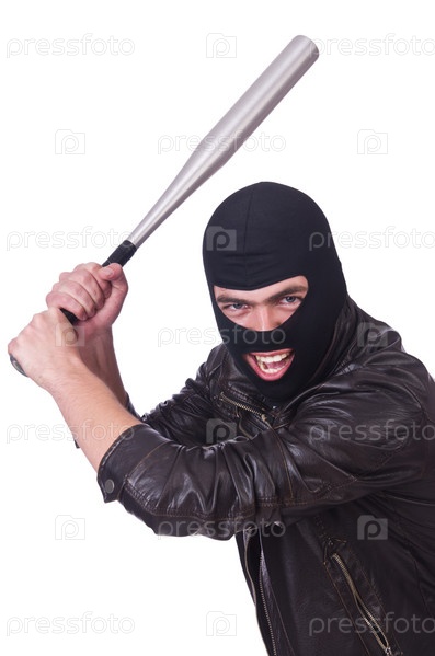 Хулиган с битой на белом фоне