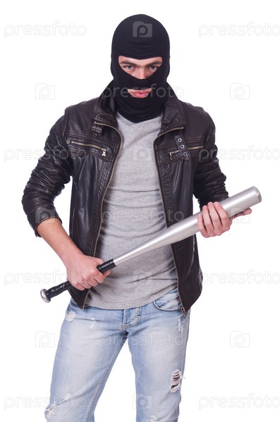 Хулиган с битой на белом фоне