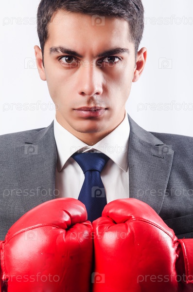 Молодой предприниматель в боксерских перчатках