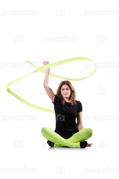 Молодая гимнастка тренируется на белом фоне