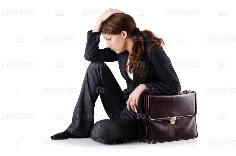 Обанкротившаяся деловая женщина, изолированная на белом фоне