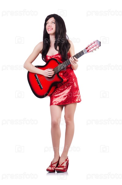 Певица с гитарой на белом фоне