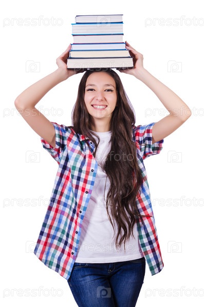Студентка с книгами, изолированная на белом фоне