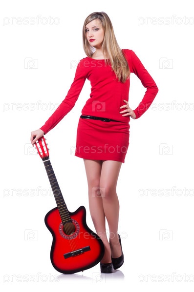 Гитаристка, изолированная на белом
