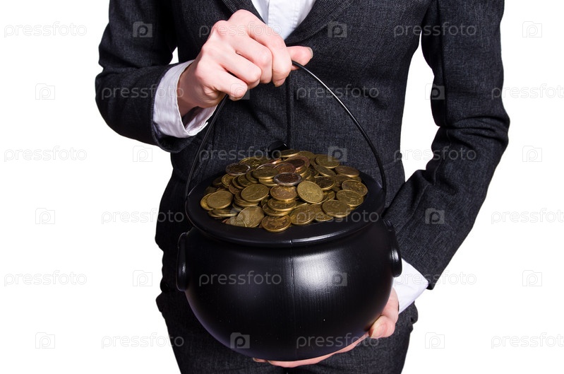 Женщина, держащая горшок золотых монет