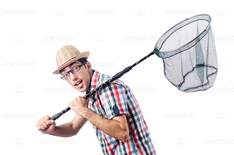 Садовник с сачком, изолированный на белом