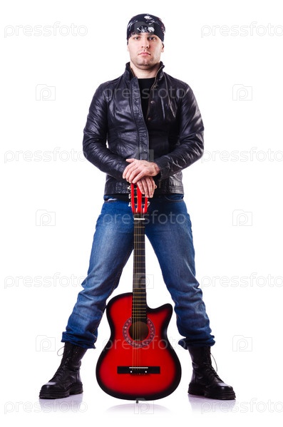 Гитарист, изолированный на белом