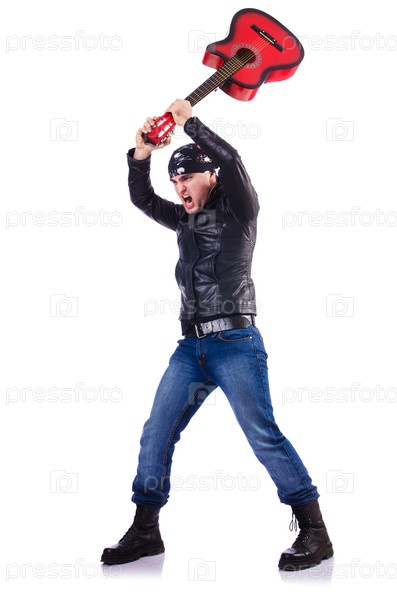 Гитарист, изолированный на белом