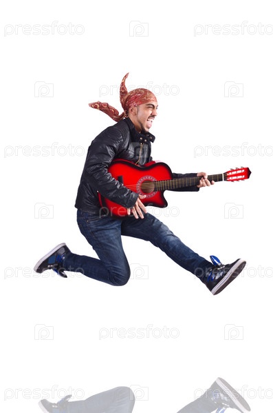 Гитарист, изолированный на белом