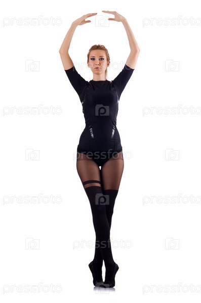 Женщина танцует, изолированная на белом