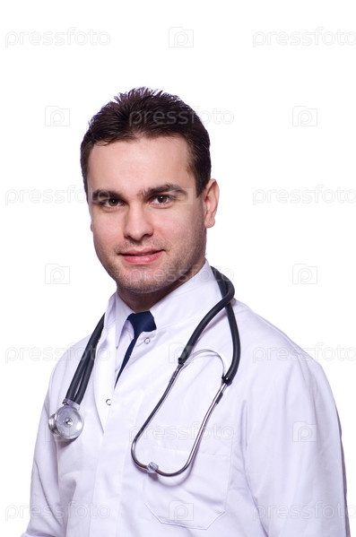 Молодой врач, изолированный на белом фоне