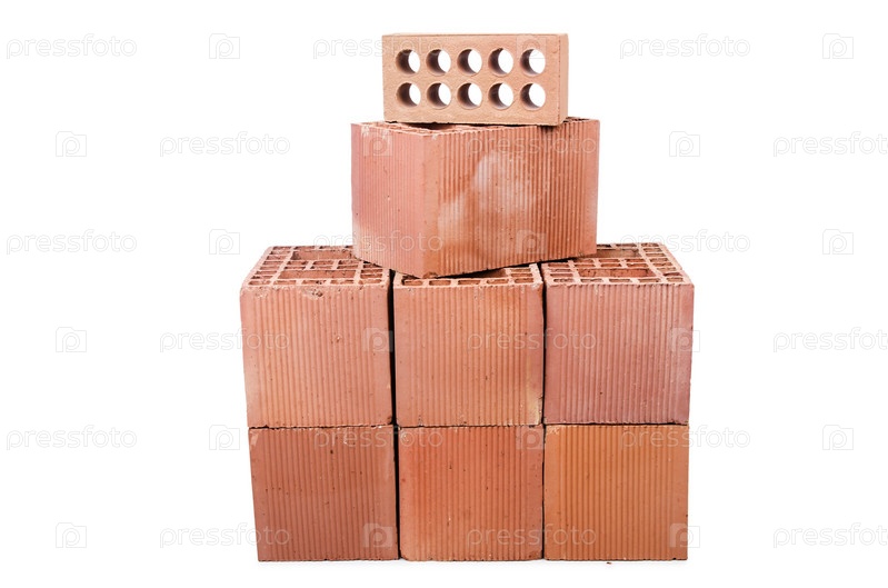 Стопка глиняного кирпича, изолированная на белом фоне