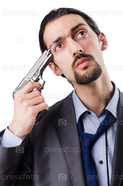 Бизнесмен совершает самоубийство, изолированные на белом