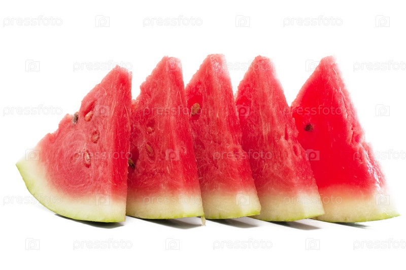 Куски арбуза, изолированные на белом