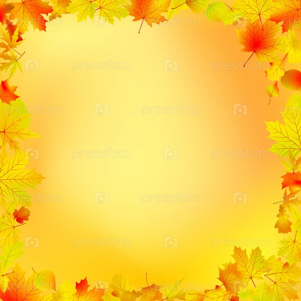 Желтый фон с осенними листьями
