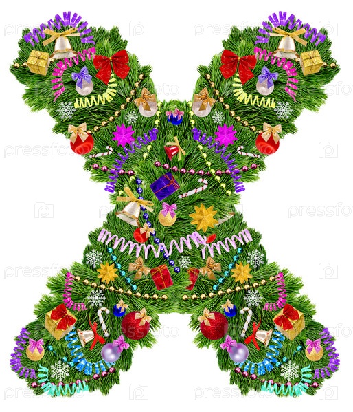Буква X из украшенной новогодней елки