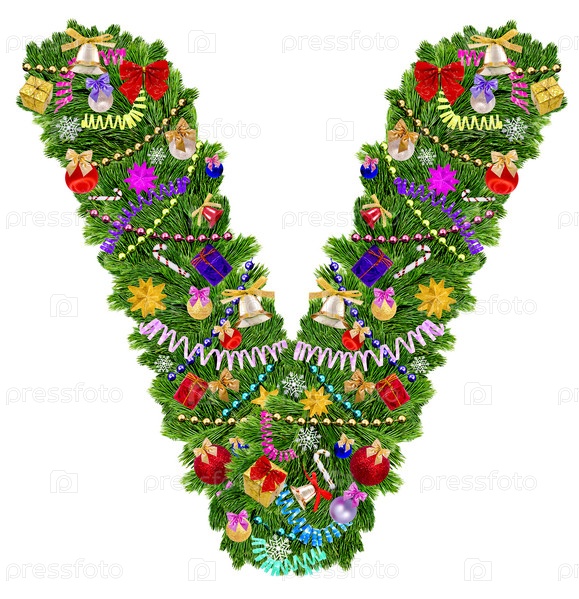 Буква V из украшенной новогодней елки