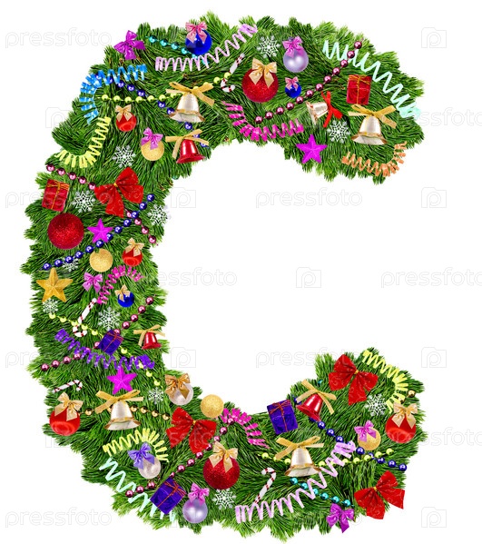 Буква C из украшенной новогодней елки