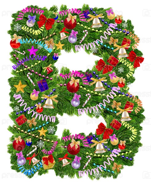 Буква B из украшенной новогодней елки