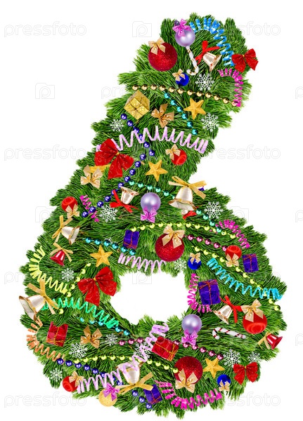 Цифра 6 из украшенного новогоднего дерева