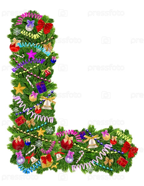 Буква L из украшенной новогодней елки