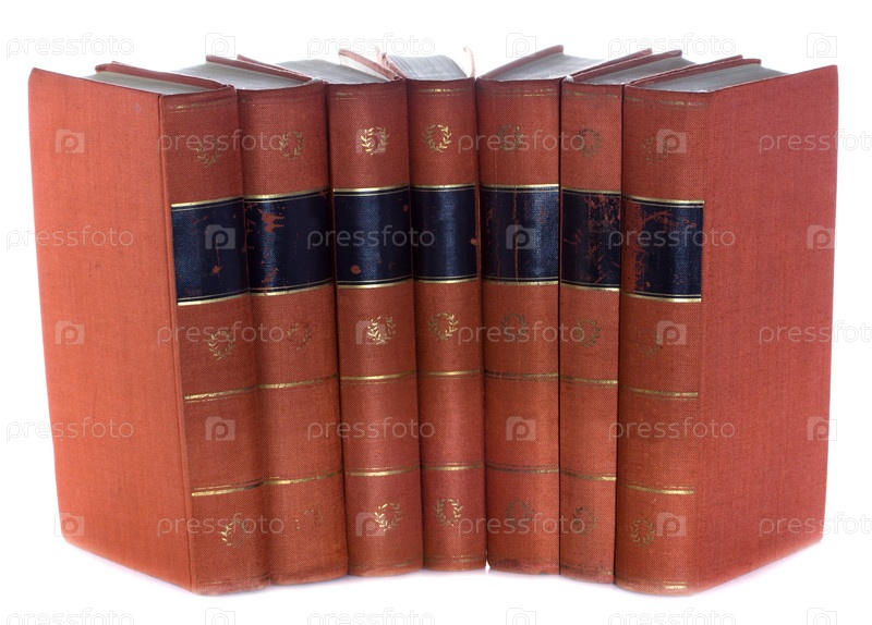Старинные книги Гете в ряд, изолированные на белом фоне