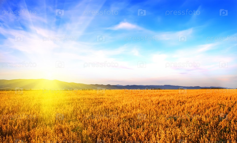 Восход солнца в поле. Россия, Алтай