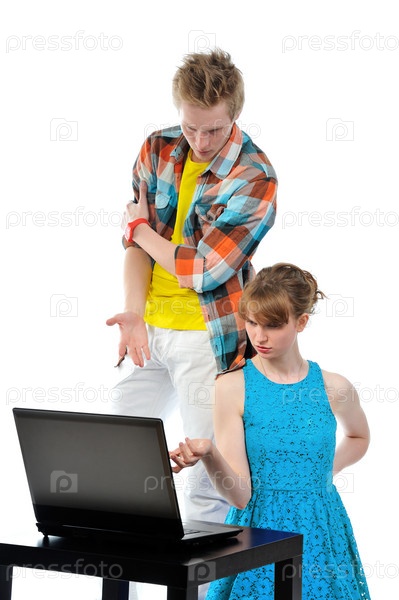 Молодая пара с ноутбуком