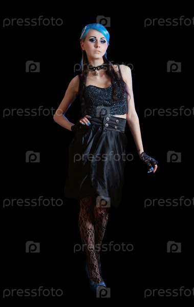 Молодая стройная женщина-гот с синими волосами