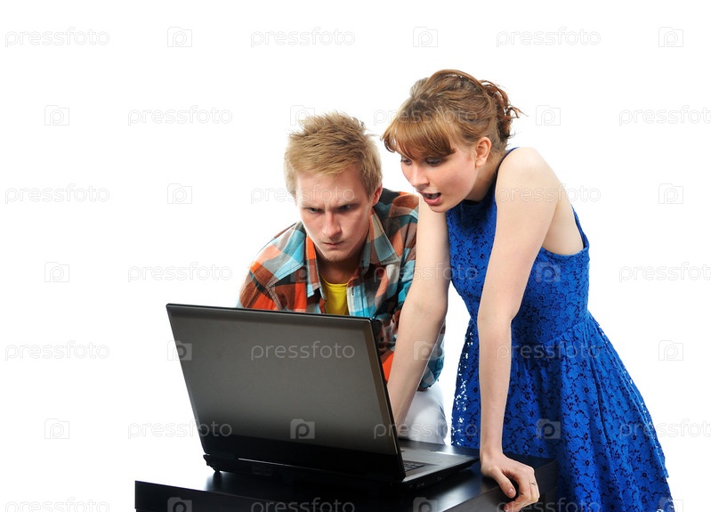 Молодая пара с ноутбуком
