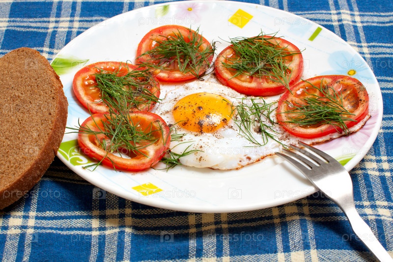 Тарелка с жареным яйцом и помидорами