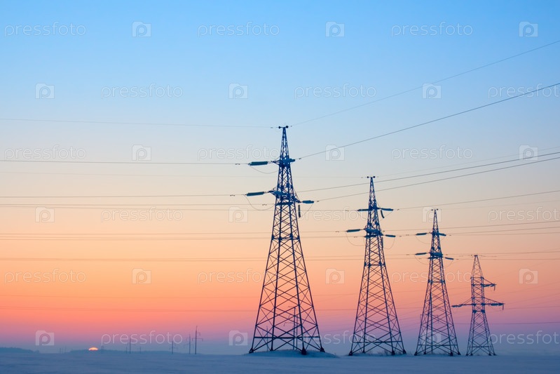 Электрические столбы снежным утром