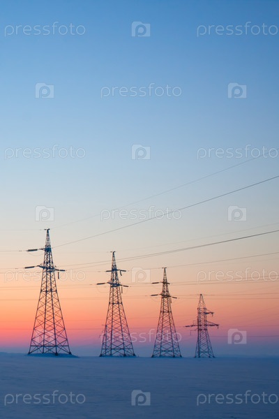 Электрические столбы снежным утром