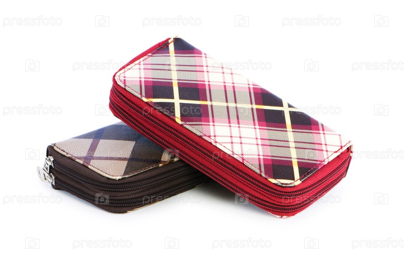 Женские кошельки на белом фоне
