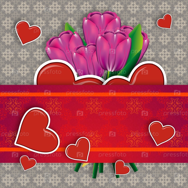 Фиолетовые тюльпаны с сердечками