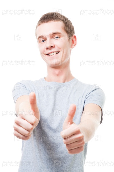 Молодой человек показывает большие пальцы
