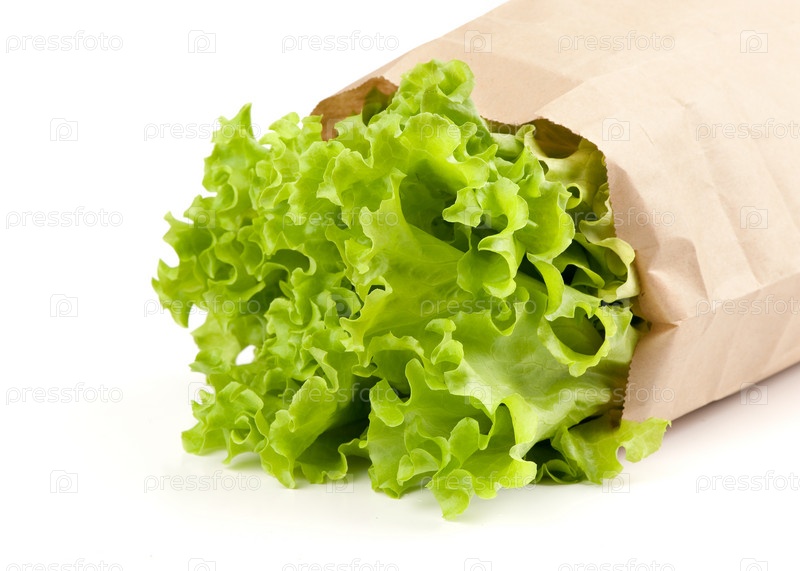 Листья салата в бумажном пакете
