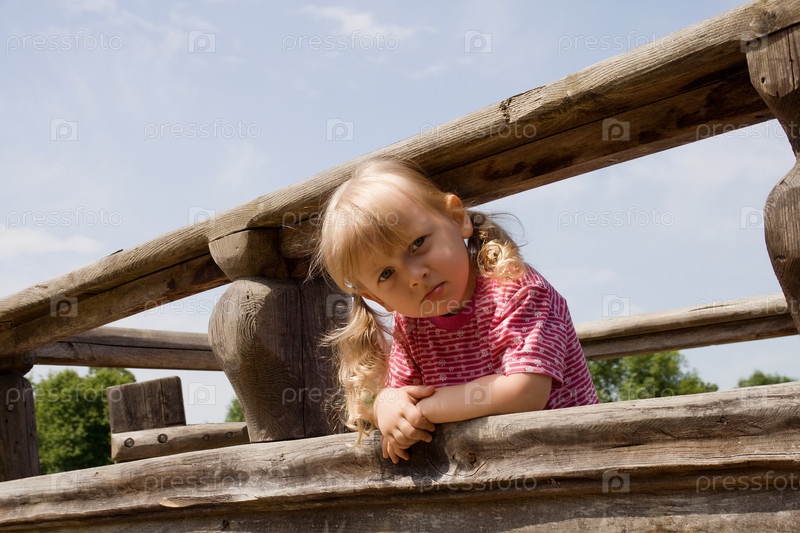 Сердитая девочка на детской площадке