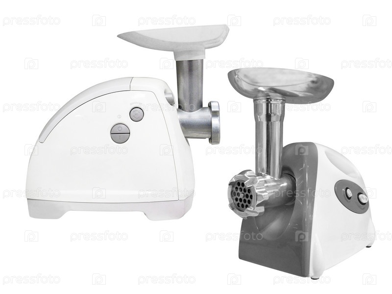 Электрическая мясорубка на белом фоне