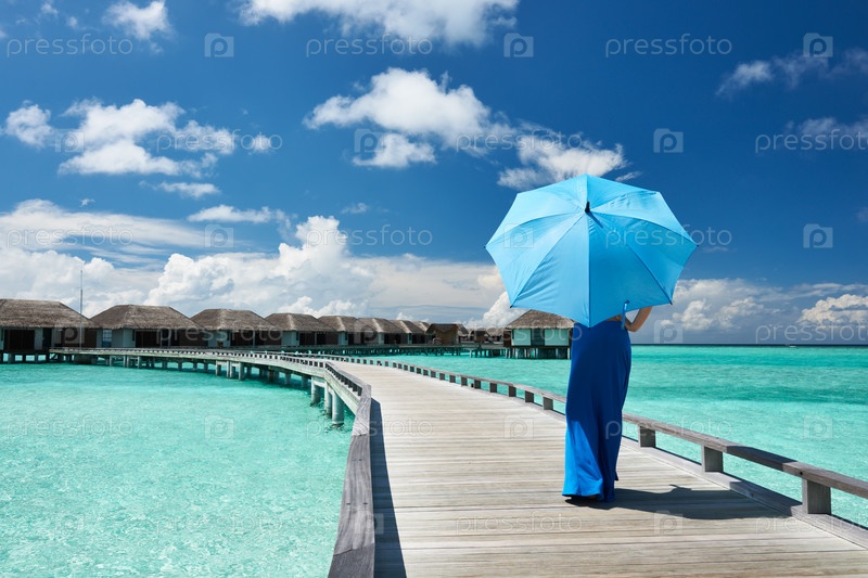 Женщина на пирсе на Мальдивских островах