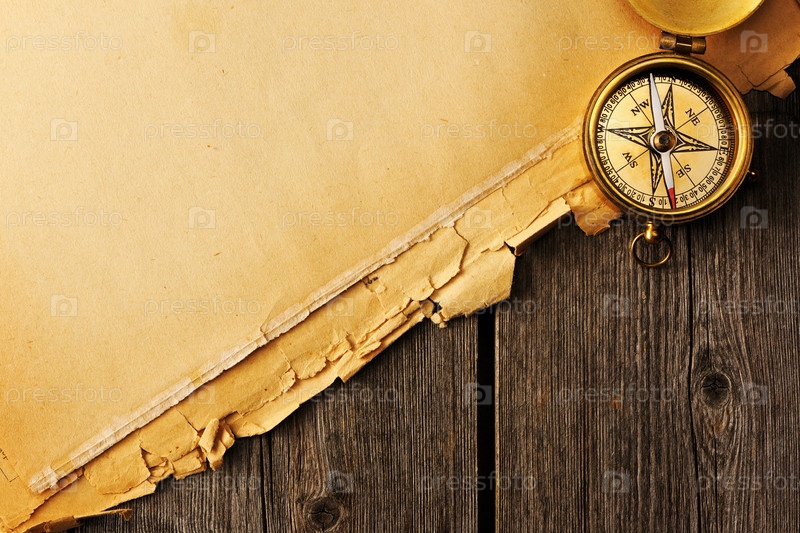 Антикварный компас над старой карте