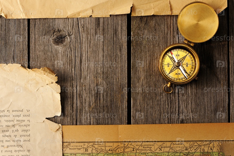 Антикварный компас над старой карте