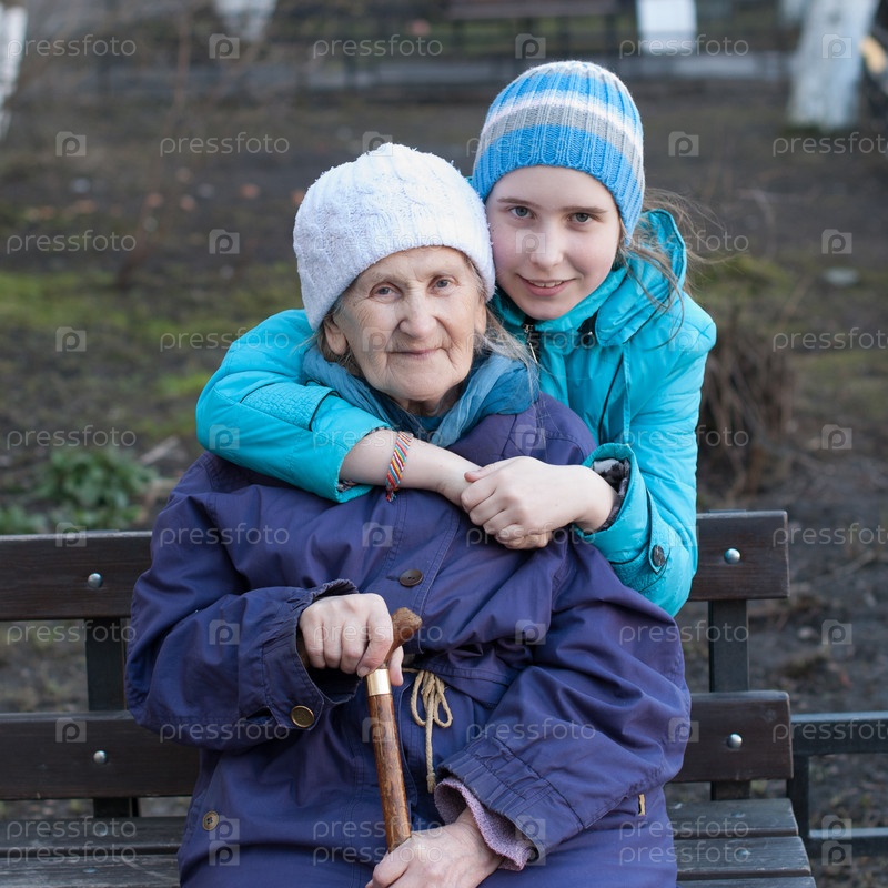 Внучка обнимает бабушку