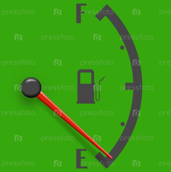 Знак низкого уровня топлива, изолированный на зеленом фоне