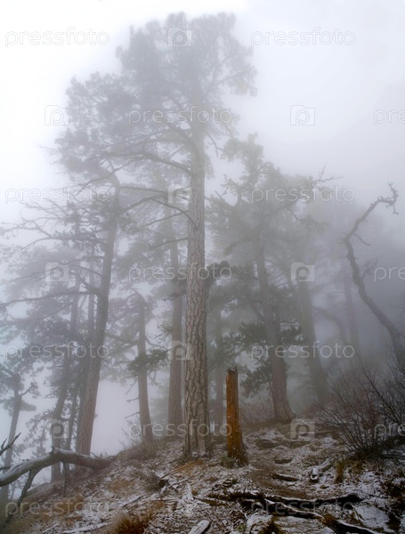Лес в тумане в горах