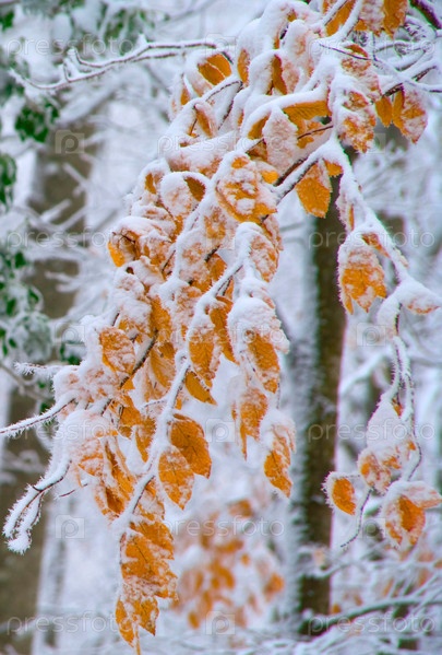 Листья, покрытые снегом