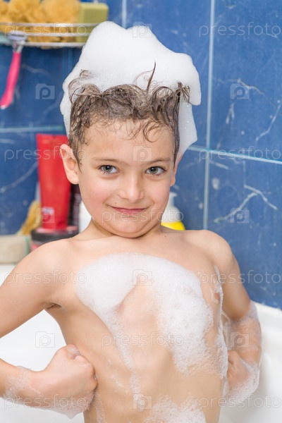Улыбающийся мальчик в пене