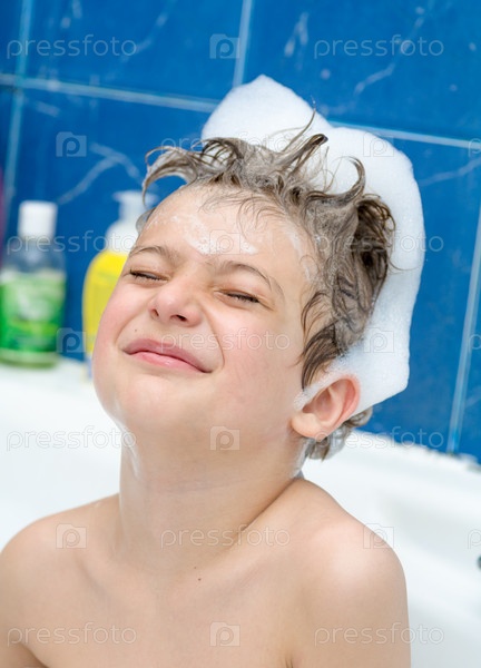 Улыбающийся мальчик в пене